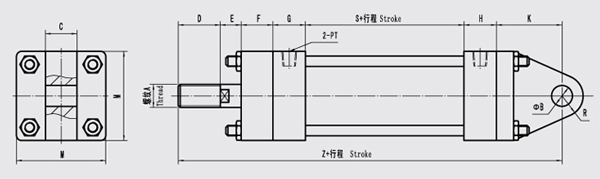 MOB - CA type hydraulic cylinder shape size