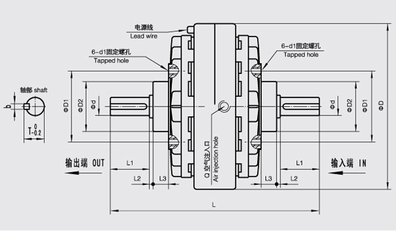 實際滑差功率為 FL型磁粉離合器在無變速機(jī)構(gòu)的情況下卷繞材料所需的最大張力與最大卷繞半徑的乘積應(yīng)不超過額定轉(zhuǎn)矩,同時應(yīng)保證制動器的實際滑差功率小于允許滑差功率。 在滑差功率滿足的情況下,把離合器放在高速級,則離合器的轉(zhuǎn)矩可以較小,則可將離合器放置于傳動機(jī)構(gòu)的中間或后面,增大工作轉(zhuǎn)矩減小滑差。 需要重點(diǎn)注意的是,建議FL型磁粉離合器采用彈性聯(lián)軸器與原動機(jī)或負(fù)載聯(lián)接,避免軸端承受徑向力,且當(dāng)采用皮帶或齒輪傳動時,需要用支架或其它相應(yīng)的機(jī)構(gòu)將它與FL型磁粉離合器隔離。