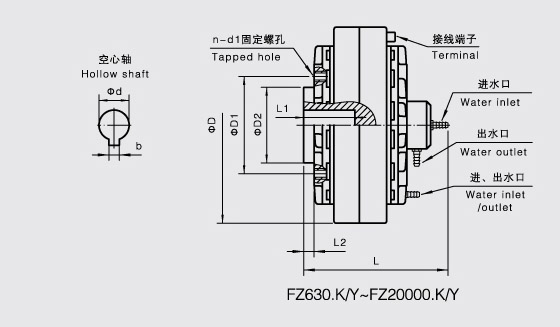 FZ-K型磁粉制動器是由主動轉(zhuǎn)子(輸入軸)、從動轉(zhuǎn)子(輸出軸)、含激磁線圈的磁軛組成,三部分相對同心裝配,形成了一個可以相對轉(zhuǎn)動的整體。