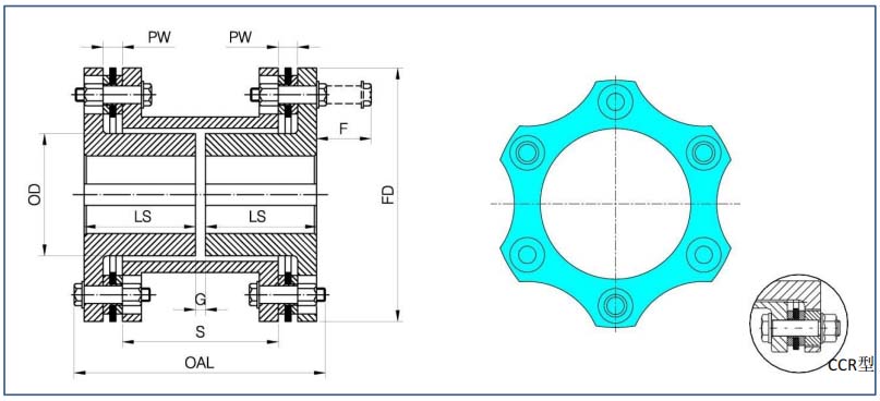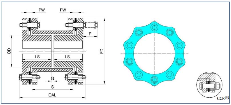 G系列膜片聯(lián)軸器有6孔、8孔及10孔設計,滿足不同扭矩及補償?shù)囊螅⒂卸喾N結構型式,可根據(jù)要求進行動平衡,也可根據(jù)要求滿足API610或API671標準。