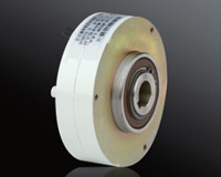 磁粉制動器是由主動轉(zhuǎn)子(輸入軸)、從動轉(zhuǎn)子(輸出軸)、含激磁線圈的磁軛組成,三部分相對同心裝配,形成了一個可以相對轉(zhuǎn)動的整體,在主動轉(zhuǎn)子和從動轉(zhuǎn)子之間的環(huán)形空隙內(nèi)填有高導(dǎo)磁性的合金磁粉。(磁粉用久了,需要換新的) 激磁線圈無電流通過時,工作腔中的磁粉呈松散狀態(tài)。在主動轉(zhuǎn)子所產(chǎn)生的離心力的作用下,磁粉被均勻地甩在主動轉(zhuǎn)子的內(nèi)壁上,主、從動轉(zhuǎn)子之間屋里的相互作用,磁粉離合器處于分離狀態(tài),沒有轉(zhuǎn)矩的傳遞。