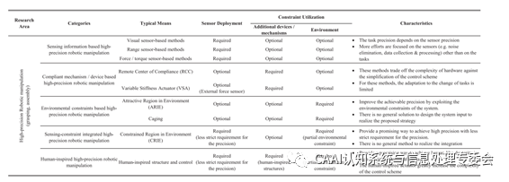 (1)基于傳感信息的方法(2)基于柔性機構的方法(3)基于環(huán)境約束的方法 (4)基于感知約束集成的方法(5)仿生的方法 1、基于感知信息的高精度機器人操控方法 典型的用于機器人操控任務的傳感器主要包括視覺傳感器、距離傳感器和力/扭矩傳感器,如圖2所示。
